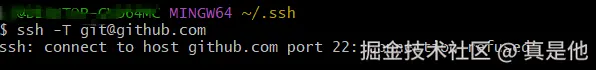 注意:有时会显示 “ssh: connect to host github.com port 22: Connection refused”
