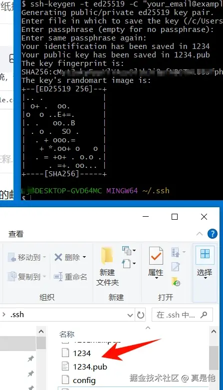 完成后会在 C:\Users\(自己电脑的用户名)\ 下生成 .ssh文件及公私钥。