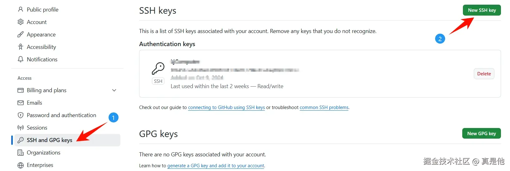 参考GitHub文档 链接① 复制公钥