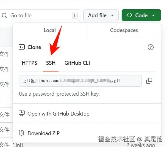 使用时复制仓库的SSH链接: