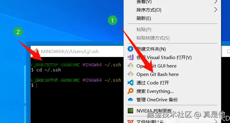 任意地方右键 打开Git bash,并输入指令