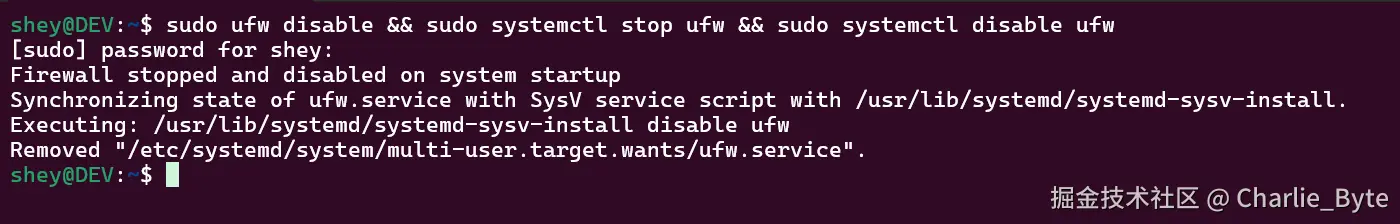 sudo ufw disable && sudo systemctl stop ufw && sudo systemctl disable ufw