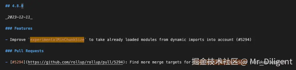 在rollup 4.8.0版本的更新中,引入了一个实验性的配置:experimentalMinChunkSize。