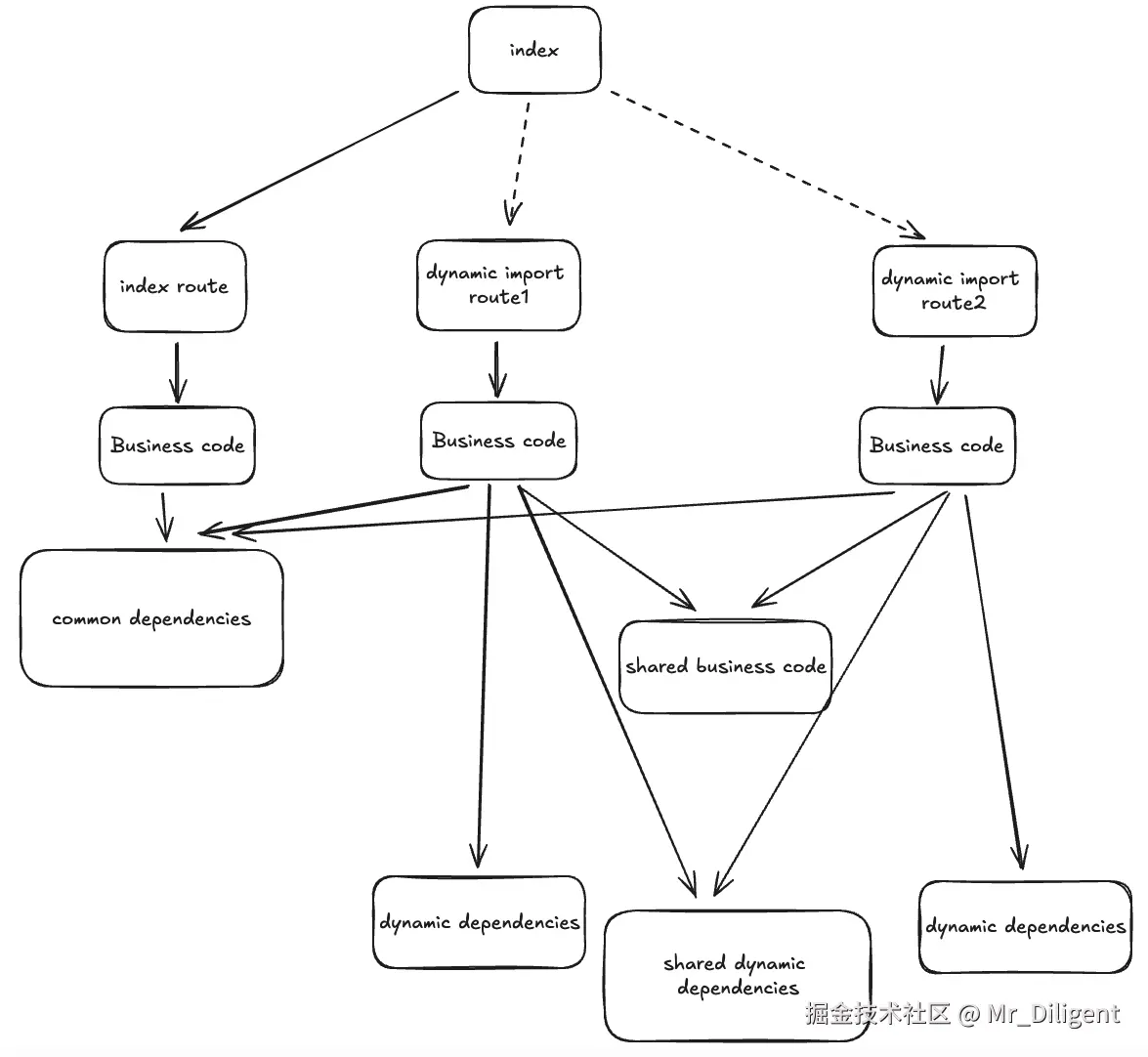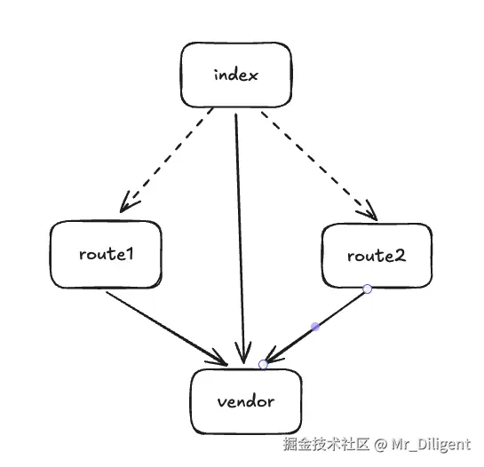 这种分包方式只会让被入口文件静态引用的依赖被打包进vendor中。route1和route2中的特有依赖,不会被拆分。在route1或route2更新后,依赖部分即使没有变化仍然需要重新加载,所以缓存命中率有较大优化空间。