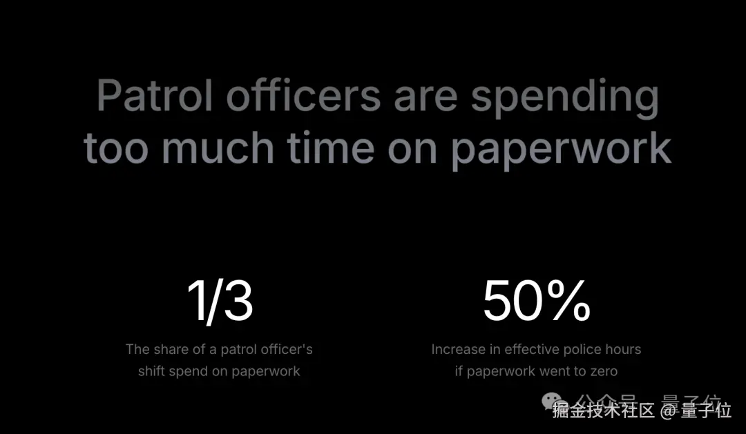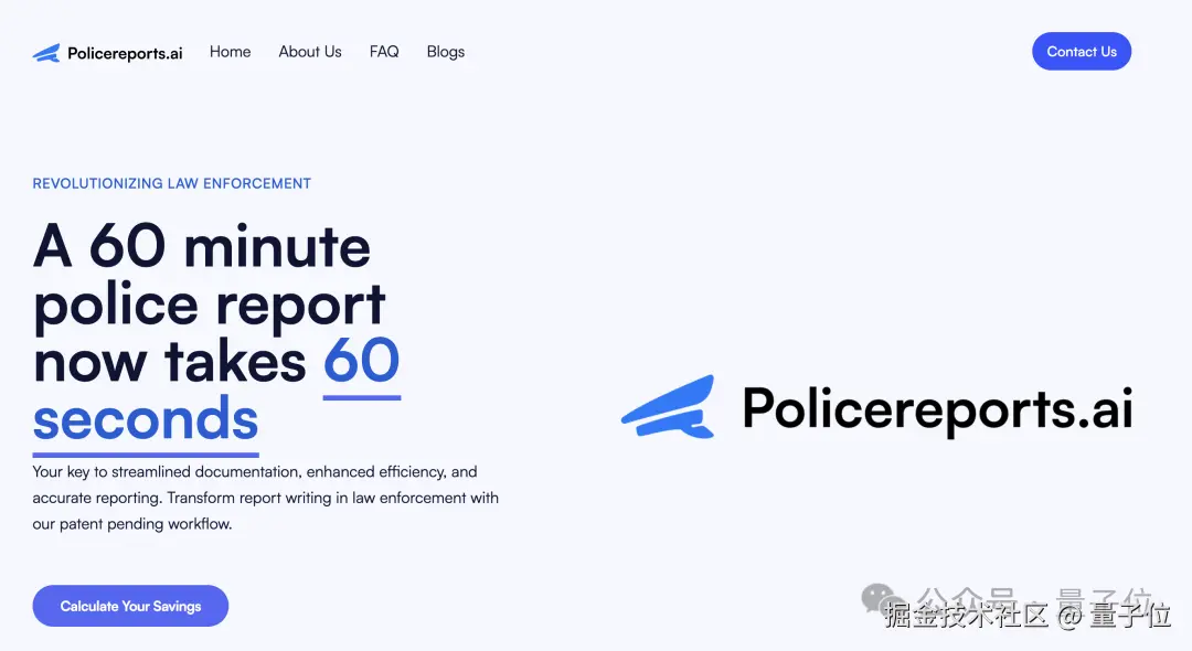 policereports.ai 的宣传中,其产品可以把一小时的报告撰写时间缩短到 1 分钟,目前已在美国的 7 个州投入使用。