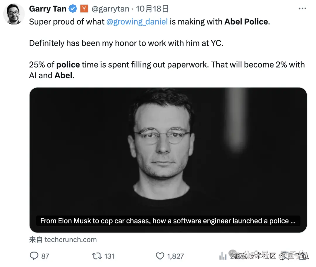 按照投资 Abel 的 YC CEO 的说法,之前警员们需要花费 25% 的时间完成文书工作,有了 Abel 之后,只用 2% 就够了。