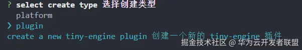 另起一个终端,输入下面命令,选择创建plugin类型,创建一个新的插件