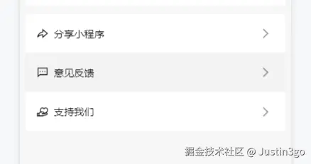 此时我们的意见反馈cell也有了对应的点击反馈,同时也能触发 open-type 的开放能力了: