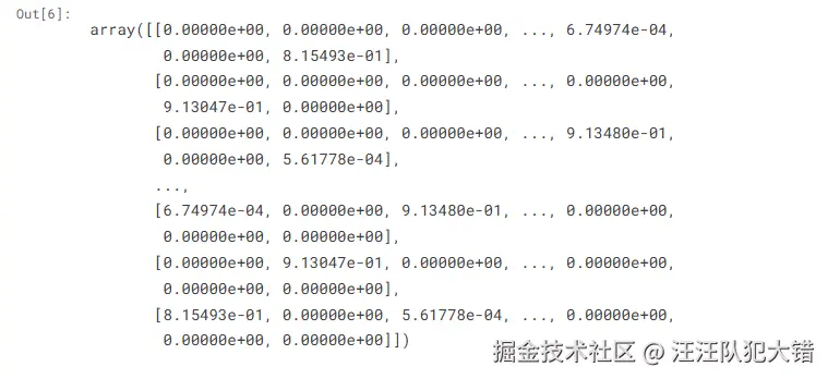 Arnie还提供了其他用于结构预测的函数。我们可以生成一个“碱基对概率”矩阵,预测每个可能的碱基对的概率(例如,以1为基数的碱基对与以2、3、4为基数的碱基对配对的可能性)。