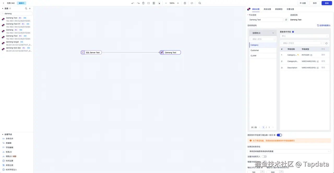 以上,便是借助 TapData 快速实现数据库 SQL Server 到 Dameng 的全、增量同步的模拟教程。