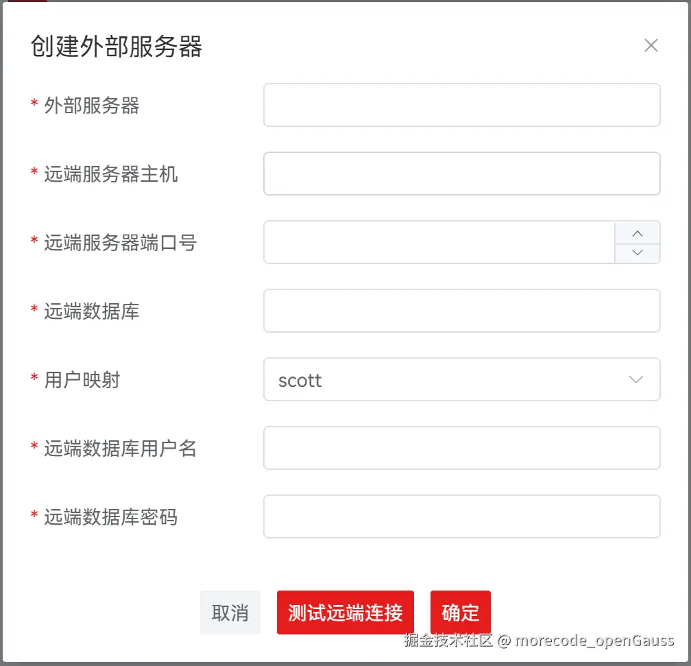 步骤 1: 在 “外表” 页面中,单击 “外部服务器” 选择框,点击 “+新建” ,弹出 “创建外部服务器” 对话框。