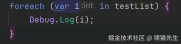 foreach (var i in testList) {