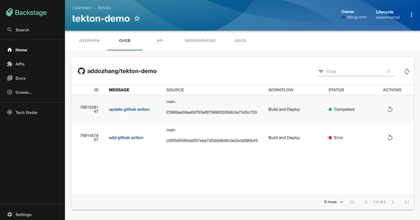 除了展示软件的信息,我们希望对项目进行构建。我提前为其添加了一个 GitHub 工作流,接下来看看如何在 Backstage 上进行构建。