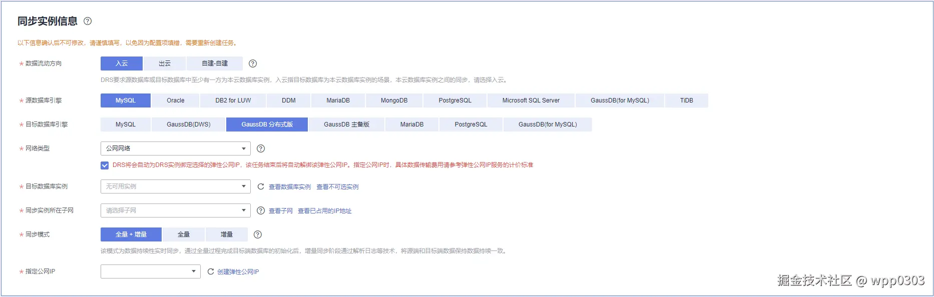 | 数据库来源 | GaussDB | 勾选本示例中创建的GaussDB实例 | ||