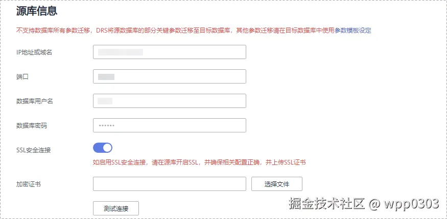 | 数据库用户 | test_info | 可以自定义用户,但是迁移时最小权限为:SELECT、LOCK TABLES、REPLICATION SLAVE、REPLICATION CLIENT | ||