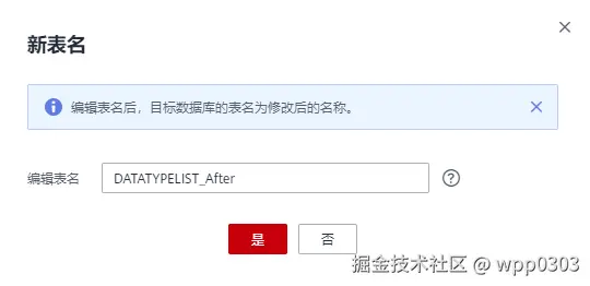 本次迁移将表名重新命名为“DATATYPELIST _After”。