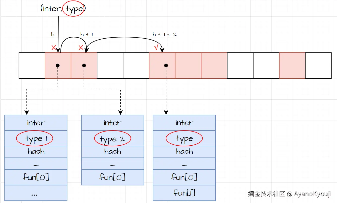 更加详细的缓存itab的细节请见:itabTableType,itabAdd。