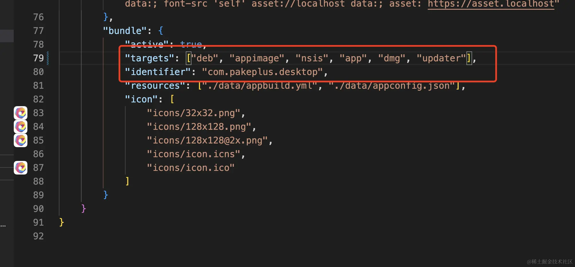 只需要配置成一个数组就可以了:["deb", "appimage", "nsis", "app", "dmg", "updater"]