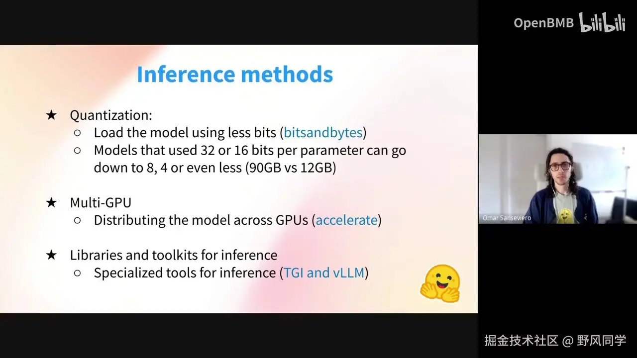 译文终稿 这份指南非常全面,涵盖了所有你能用它做的事情。最终,我们能够训练模型、微调它们并进行对齐。下一个问题是,如何运行这些模型。正如我之前暗示的,你可以使用量化技术,用更少的比特加载模型。有多种库支持这一点,包括在生态系统中颇受欢迎的bitsandbytes,它支持以每个参数四或八比特的方式加载模型。我们也在进入一个新世界,有些模型无法装入单个GPU,比如那些拥有数千亿参数的模型。在这种情况下,你需要将模型分布到多个GPU上。像Accelerate这样的库可以让你轻松实现这一点。然而,如果你处理的是超大型模型,就必须考虑这一点。最后,运行这些模型的推理并不简单。关于如何尽可能快速地进行推理,有大量的研究,并且有像TGI和vLLM这样的开源库和工具来简化这一过程。