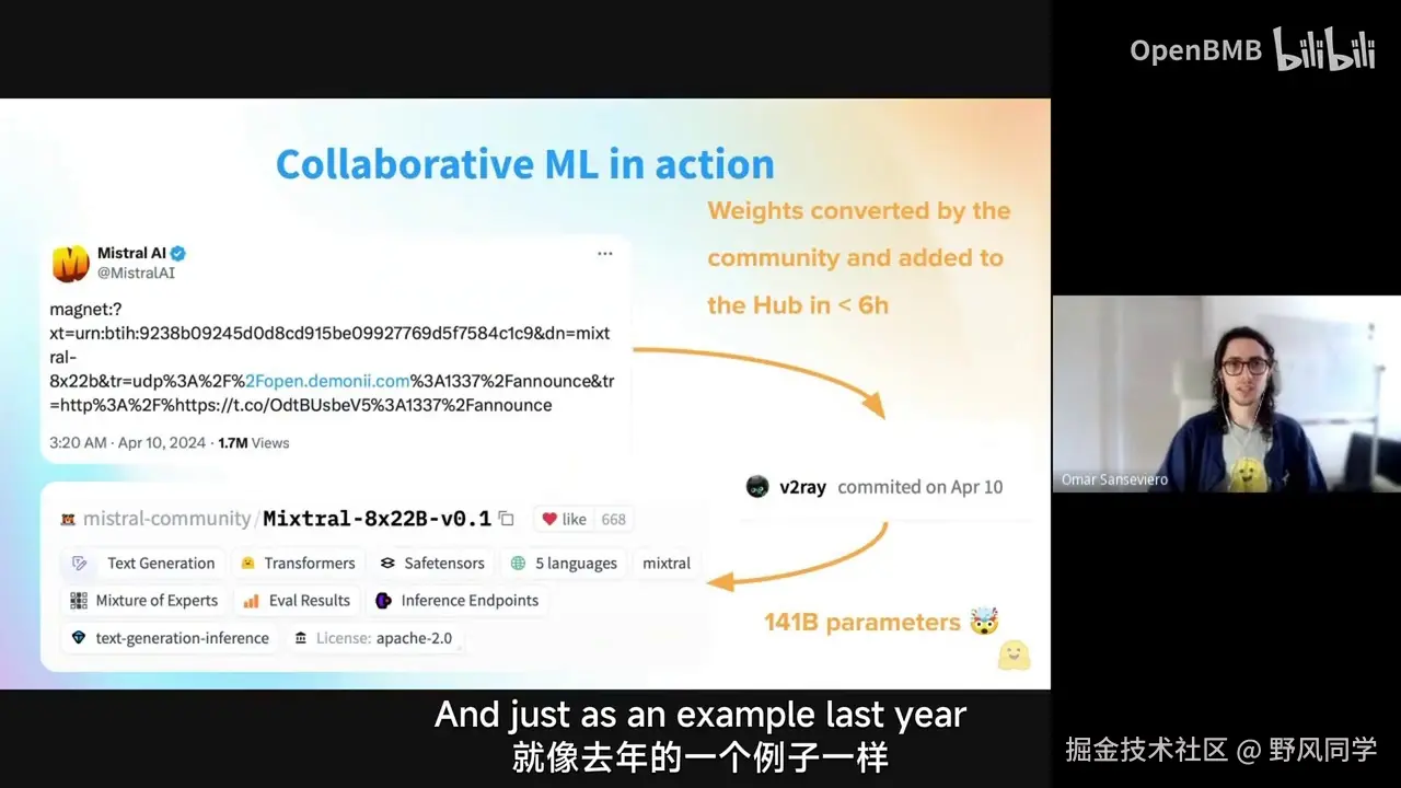 我还会提到其他几个库。但在深入讨论之前,我想先介绍一下为什么采用更协作的方式进行机器学习,而不是竞争和封闭的方式,这一点至关重要。非协作式机器学习的首要问题是进展缓慢,因为许多人都在重复造轮子。众多研究实验室沿着相同的科研路径,训练相同的模型,比如谷歌的原始BERT模型,导致努力重复和资源浪费。其次,闭源研究通过与生态系统疏远,使模型变得难以理解,从而疏离了社区,这在商业角度上是一个挑战。相反,公司们争相开发最好的闭源大型语言模型,导致了一场代价高昂的逐底竞争。相比之下,协作方式通过Discord和Reddit等平台促进了社区参与,加速了进展。这种转变开拓了新的市场机会,并鼓励了创新的商业模式,而不是陷入逐底竞争。