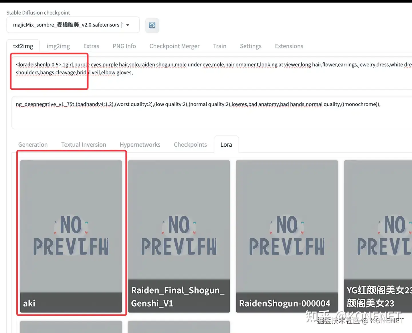 在Stable Diffusion中,选择Lora,点击对应的Lora模型。点击生成
