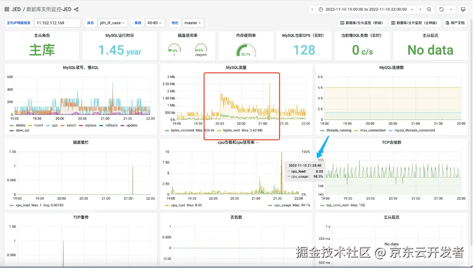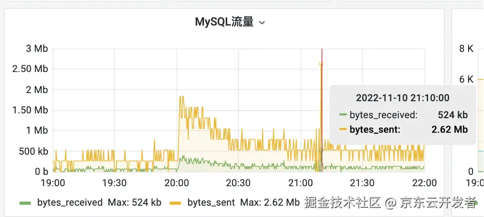 在某次大促的当天,突然接到DBA运维的报警,说数据库突然流量激增,CPU也打到100%了,影响了部分线上功能和体验,遇到这种情况当时大部分人都比较紧张,下图为当时的数据库流量情况: