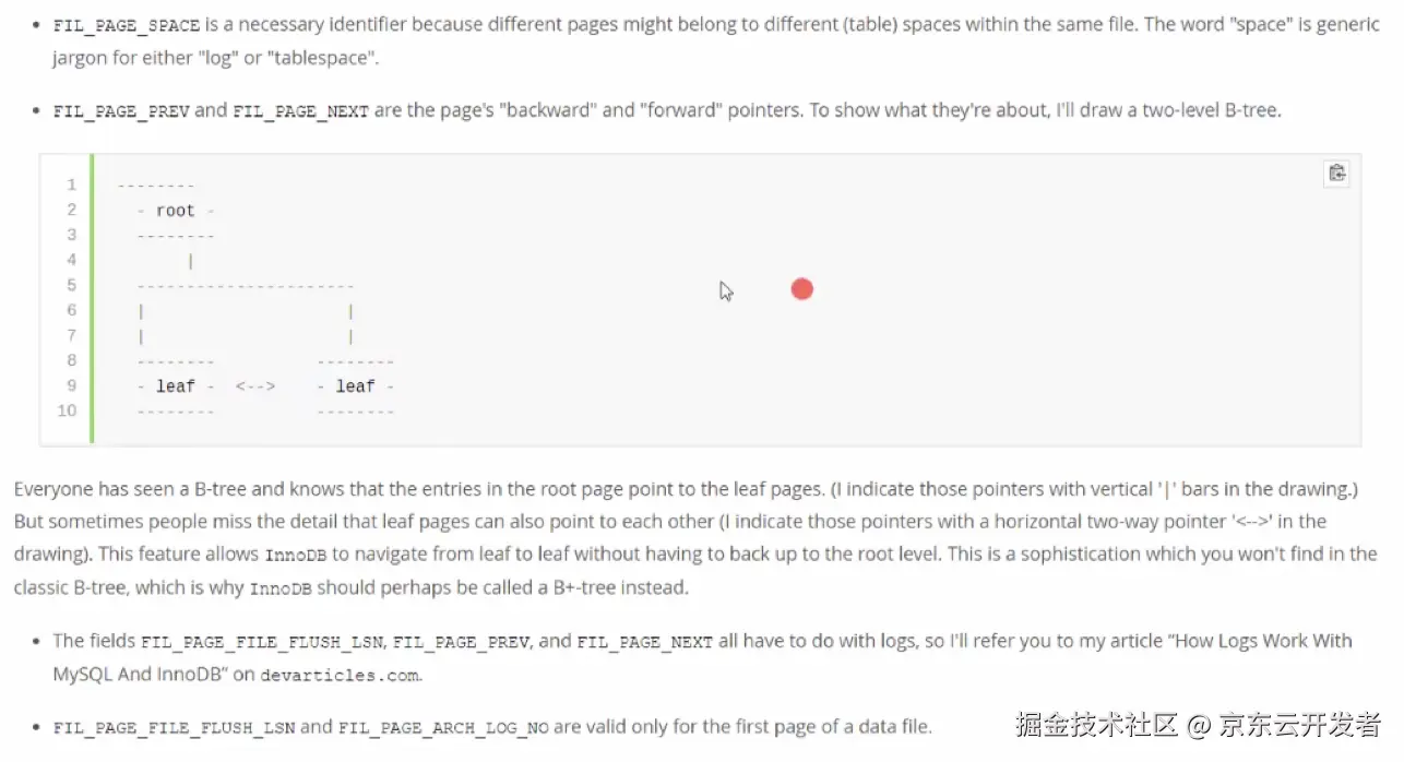 而在MySQL官网上介绍的索引的叶子节点是双向链表。