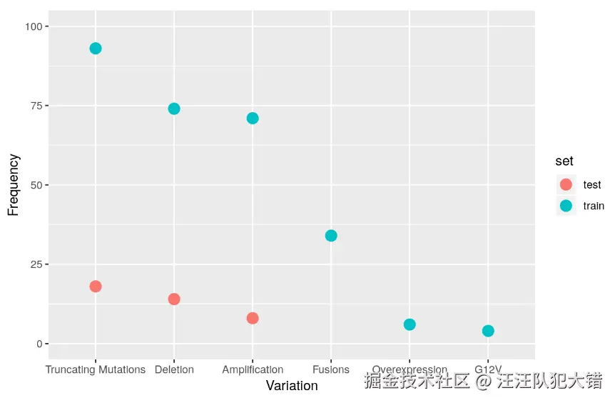 - 在训练数据和测试数据中,相对较小的基因水平组构成了相当大的一部分特征值。
