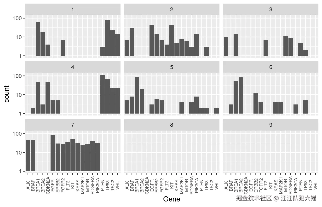 - 测试数据中高频基因较少。