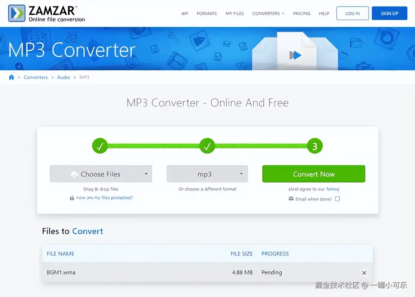 Zamzar是免费的文件格式转换工具,支持大部分的文档类型转换,如音频、视频、图片等文件类型。下文介绍使用该工具将音频WMA转成MP3格式的优点和缺点。