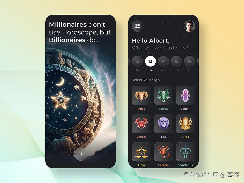 神秘、梦幻,是这款星座APP给人的第一印象。APP界面通过可视化的图表和精美的插画,让用户轻松查看每日星座运势。交互设计流畅,用户可以快速切换不同星座的相关内容,比较适合年轻用户群体使用。