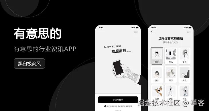 这款资讯APP,在视觉上采用了黑白、极简线条做装饰,整体风格偏简约,便于用户更好地专注于内容。页面布局上采用了卡片式布局,每一条资讯都以模块化方式展示,使得界面在承载大量信息的同时,依然保持整洁明了。