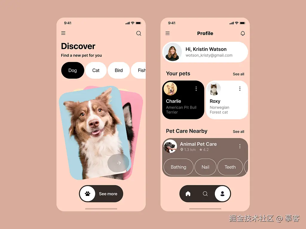 如果你有宠物,你一定会爱上这款APP的设计。它采用了淡粉色的主色调,可爱的图标,萌萌的宠物插图,风格温馨友好,让人看到就心软软。