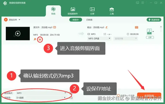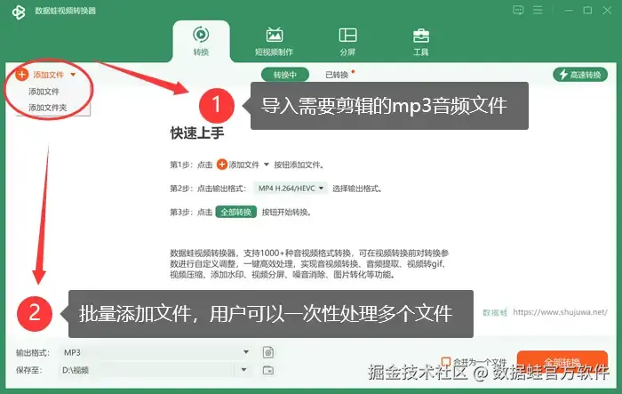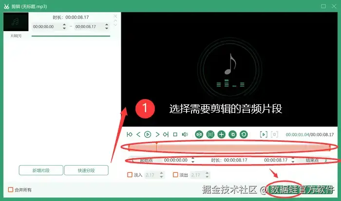 无论是想要剪辑出一段精彩的手机铃声,还是希望为视频添加合适的背景音乐,使用数据 蛙都能完成。在线mp3剪辑已经不再是难题!只需4步简单的操作,你就能轻松实现音频的精准剪辑和转换,让你的音乐梦想在指尖跳跃。快来试试吧!