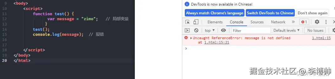 var message = "zimo"; // 局部变量