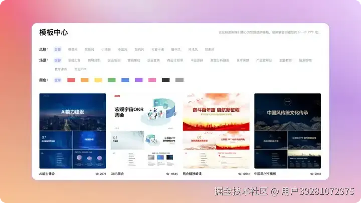 歌者 PPT 内置多样化的模板和版式库,用户可以根据不同场景需求选择适合的模板,灵活设计符合个人或品牌风格的 PPT。此外,还允许用户自定义模板,打造符合个人或品牌风格的 PPT。