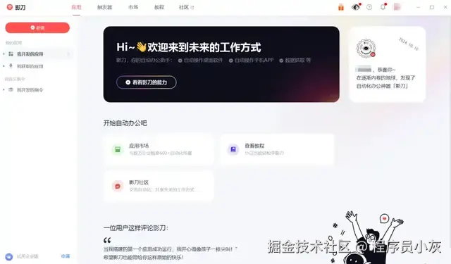 影刀是国内最流行的RPA平台之一,它由杭州分叉智能科技有限公司开发。影刀能够模拟人工的各种操作,帮企业工自动处理大量重复、有逻辑规则的工作,让员工拥有更多的时间去处理更有创意和价值的事情。