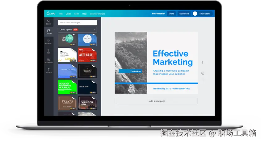 Canva是一款在线设计工具,Canva PPT提供了丰富的模板和设计元素,让用户可以轻松制作出美观的演示文稿。