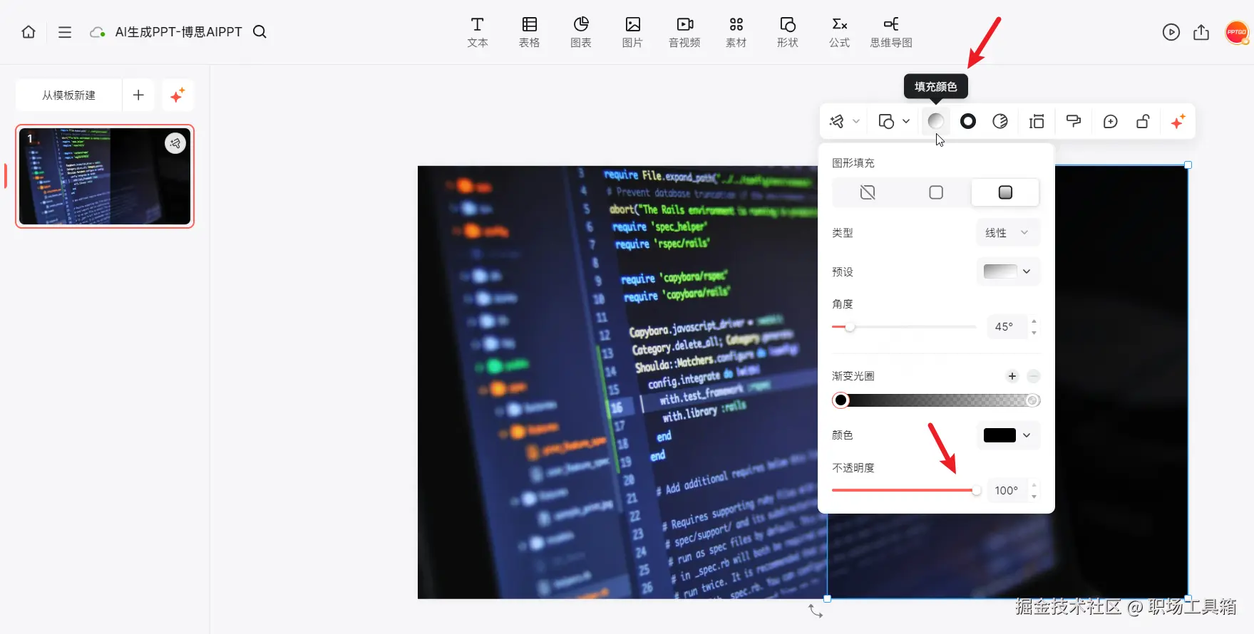 功能特点:博思AIPPT拥有AI一键生成PPT、智能排版、丰富的图表和图形库、多人在线协同编辑等功能。在制作PPT蒙版方面,它提供了多种形状和颜色选择,以及方便的透明度调整工具。