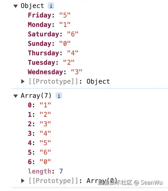 TS中枚举值的原理 SeanWu 2024-10-22 57 阅读1分钟 ts中的枚举值是个很神奇的东西,ts中其他的都可以算是类型,唯独枚举值是可以参加到js逻辑计算中 然后业务拿来用 就很神奇 的参与到业务逻辑中了 再写一个判断整周的函数 这里输入这个枚举值定义 这里发现 原来是 枚举 是以对象的形式存在
