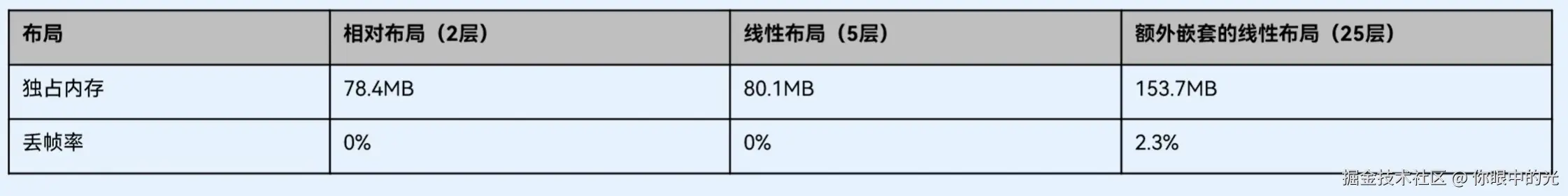 错误的布局方式会导致组件树和嵌套层数过多,在创建和绘制阶段会产生较大性能开销,导致页面卡顿。合理的使用布局可以减少嵌套层数,提高布局效率