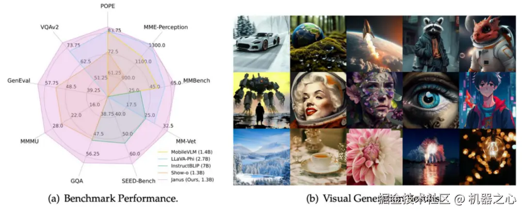 Janus 是一个基于自回归的统一多模态理解与生成框架,具有简单性、高效性和高度灵活性。通过解耦视觉编码,我们突破了当前多模态统一模型中的性能瓶颈,拉进了大一统模型和专用模型在专项任务上的性能差距,解锁了多模态统一模型的新范式。