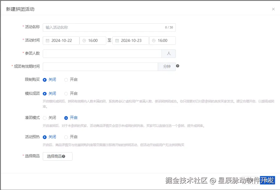 可以在商家端后台设置,商家端后台--营销--拼团管理