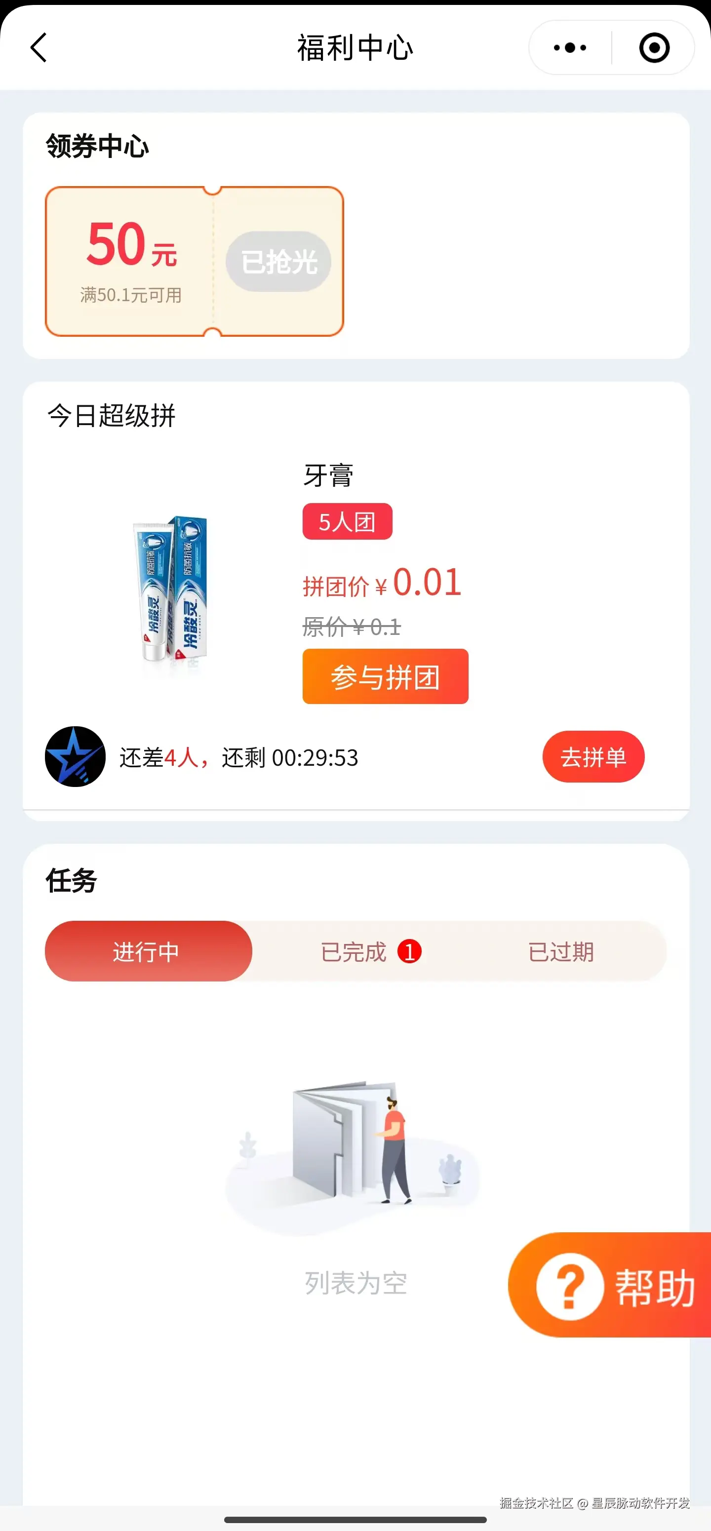 首页:点击福利中心查看拼团