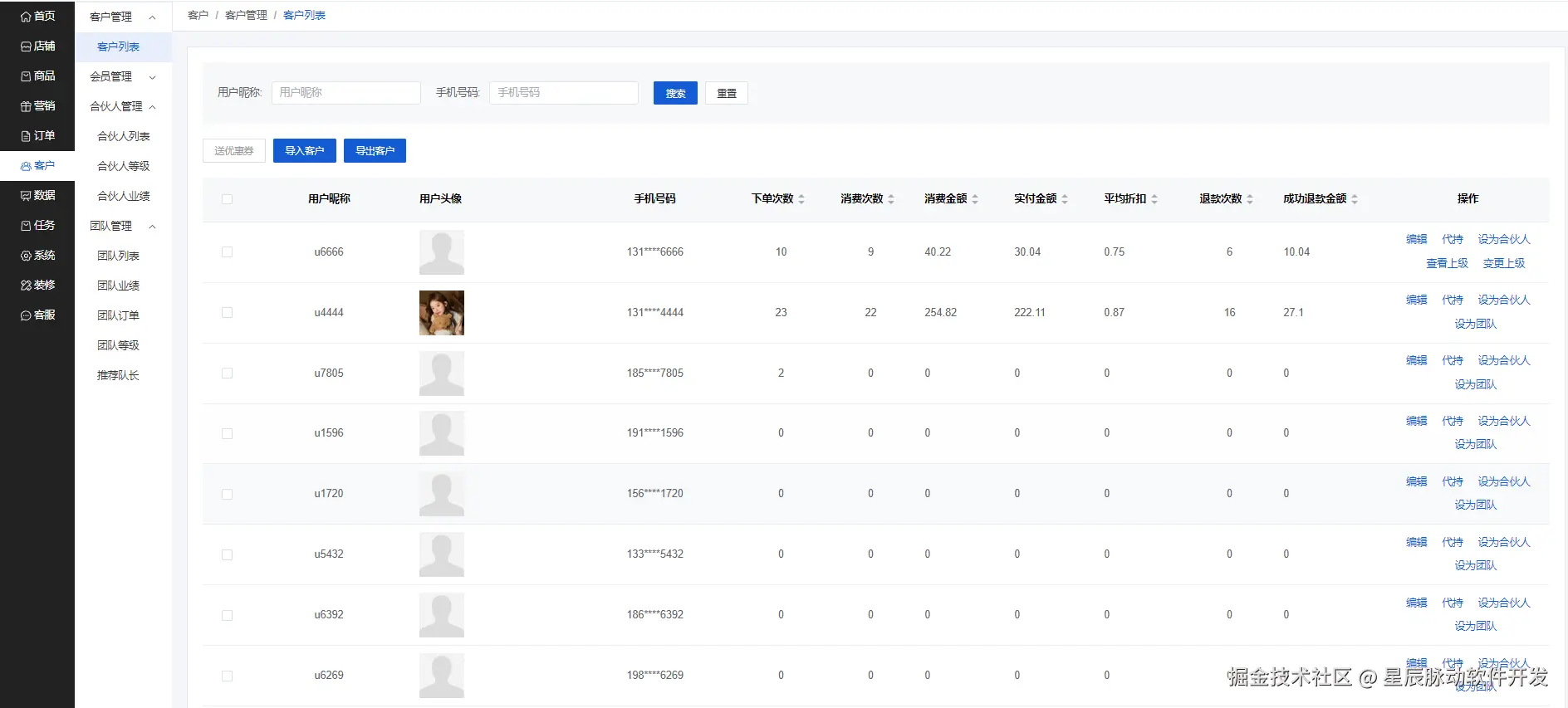 商家端后台--客户--客户管理