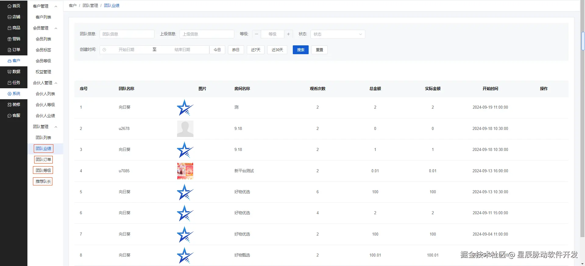 可以查看团队的业绩,订单,等级和推荐队长。