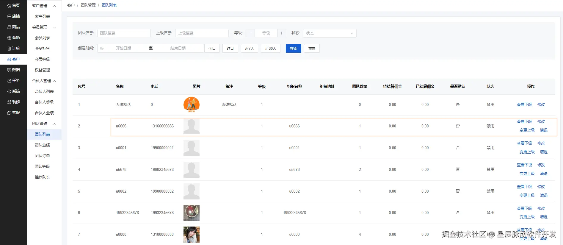 商家端后台--客户--团队管理