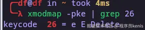 keycode 26 = e E Delete