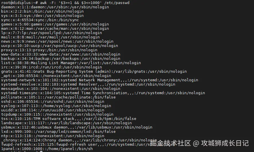 root@didiplus:~# awk -F: '/bash$/{print}' /etc/passwd