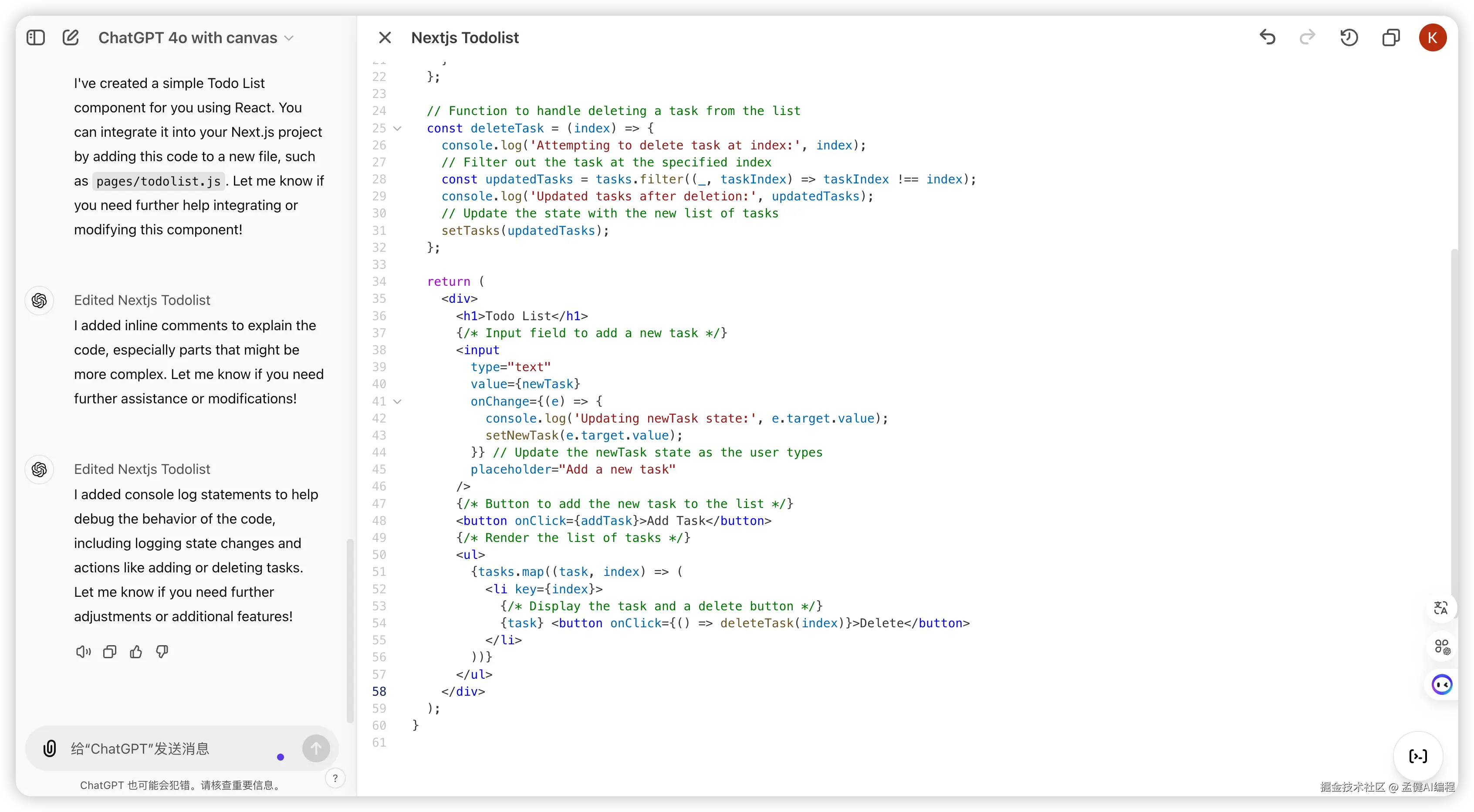当然,也可以强制指定进入Canvas: "open a canvas" 或者 “open a coding canvas” ,都可以直接触发Canvas模式: